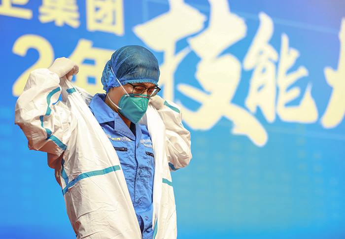 自疫情暴发以来,集团承担着全市大部分涉疫垃圾的收集、清运和焚烧处理的全流程工作。对于从事涉疫垃圾处理的职工而言,穿脱防护服环节必不可少,各项标准要求极高。比赛现场,19支队伍的76名选手严格按照标准流程,认真完成每一个步骤、每一处细节,展现出了扎实的基本功。