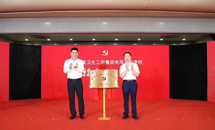 在KY开元电竞党校成立仪式上,高踪阳同志(左)与朱柏成同志(右)共同揭牌