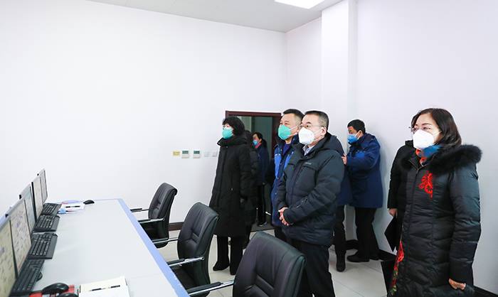 在转运站中控室,李庆忠同志一行认真听取讲解