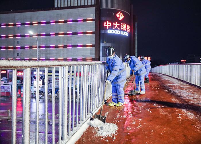 降雪开始后,集团所属各作业单位出动多功能机械除雪车对匝道、坡道等易结冰区域采取预洒融雪剂方式,防止结冰。同时通过机械和人工方式,在各作业路段连夜进行推雪、融雪,确保路面无积雪、无结冰,行人和车辆出行正常有序。
