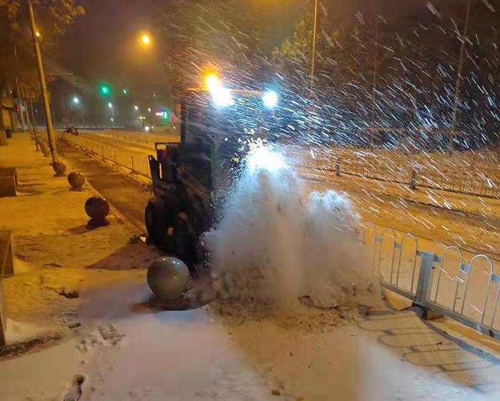 11月6日20时30分许,北京机扫公司奥园环境服务中心职工正在清理积雪